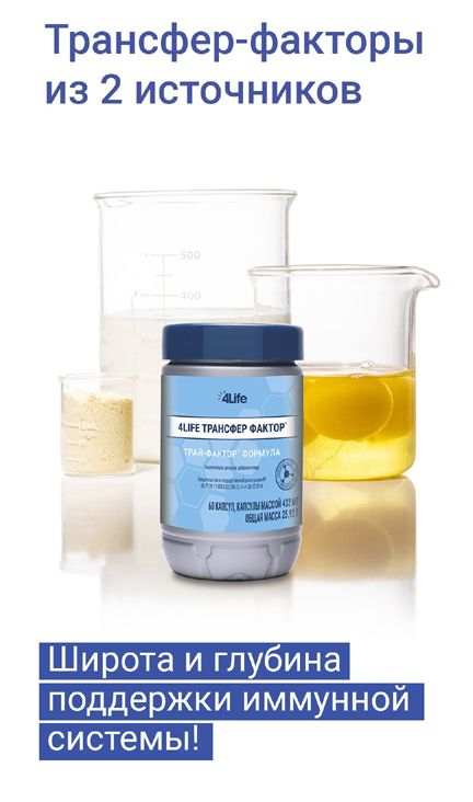 Убедившись на многочисленных практических примерах в эффективности Трансфер Фактор Классик, компания 4Life не остановилась на достигнутом, а продолжила поиски путей увеличения эффективности продукта. И в результате научных исследований появился новый продукт 4Life Трансфер Фактор ТРАЙ-ФАКТОР™ Формула.